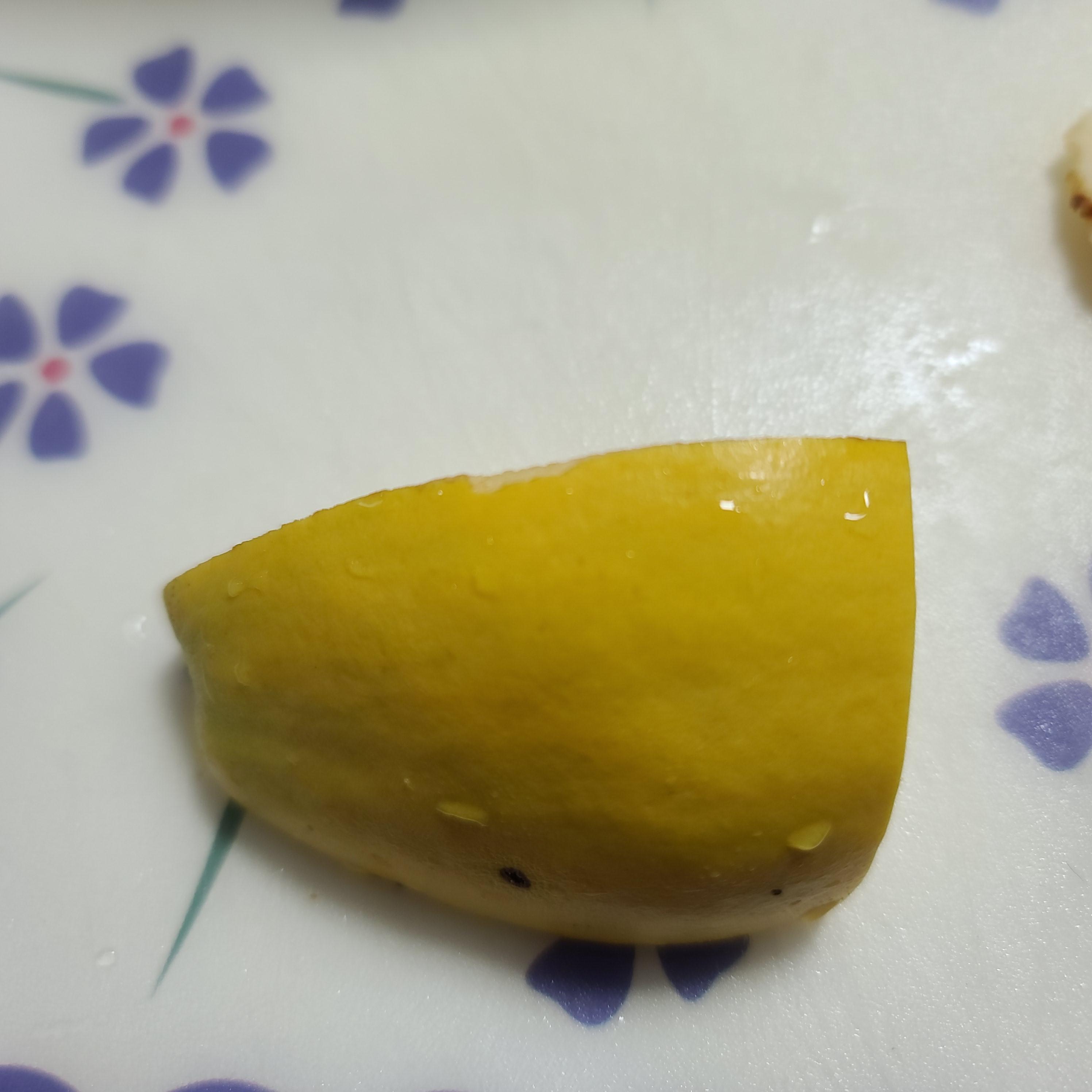 베이킹소다로 모과를 문질러서 모과를 닦은 후, 모과를 물로 깨끗히 씻어줍니다.