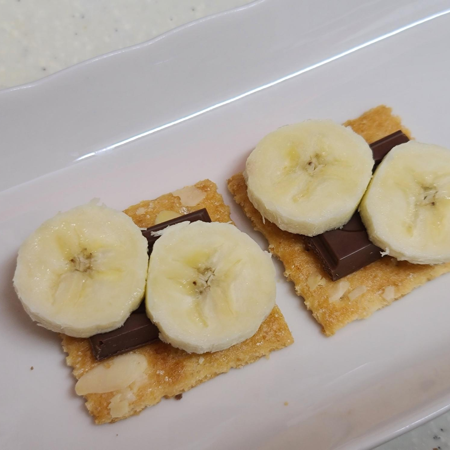 2. 초콜릿 위에 바나나를 잘라 올립니다.